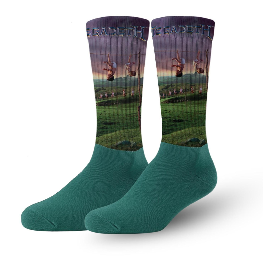 Ha llegado el calcetín perfecto para todo rockero o metalero, con una calidad y durabilidad brutal. El diseño de este calcetín esta basado en el disco Youthanasia de la banda Megadeth.