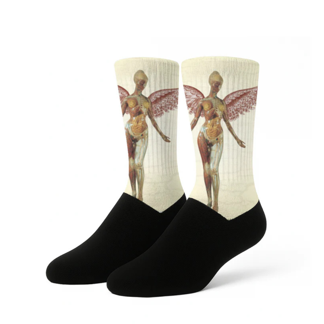Ha llegado el calcetín perfecto para todo rockero o metalero, con una calidad y durabilidad brutal. El diseño de este calcetín esta basado en el disco In utero de la banda Nirvana.