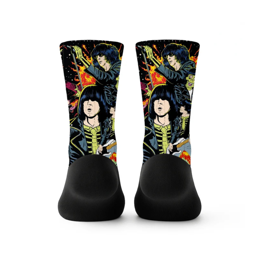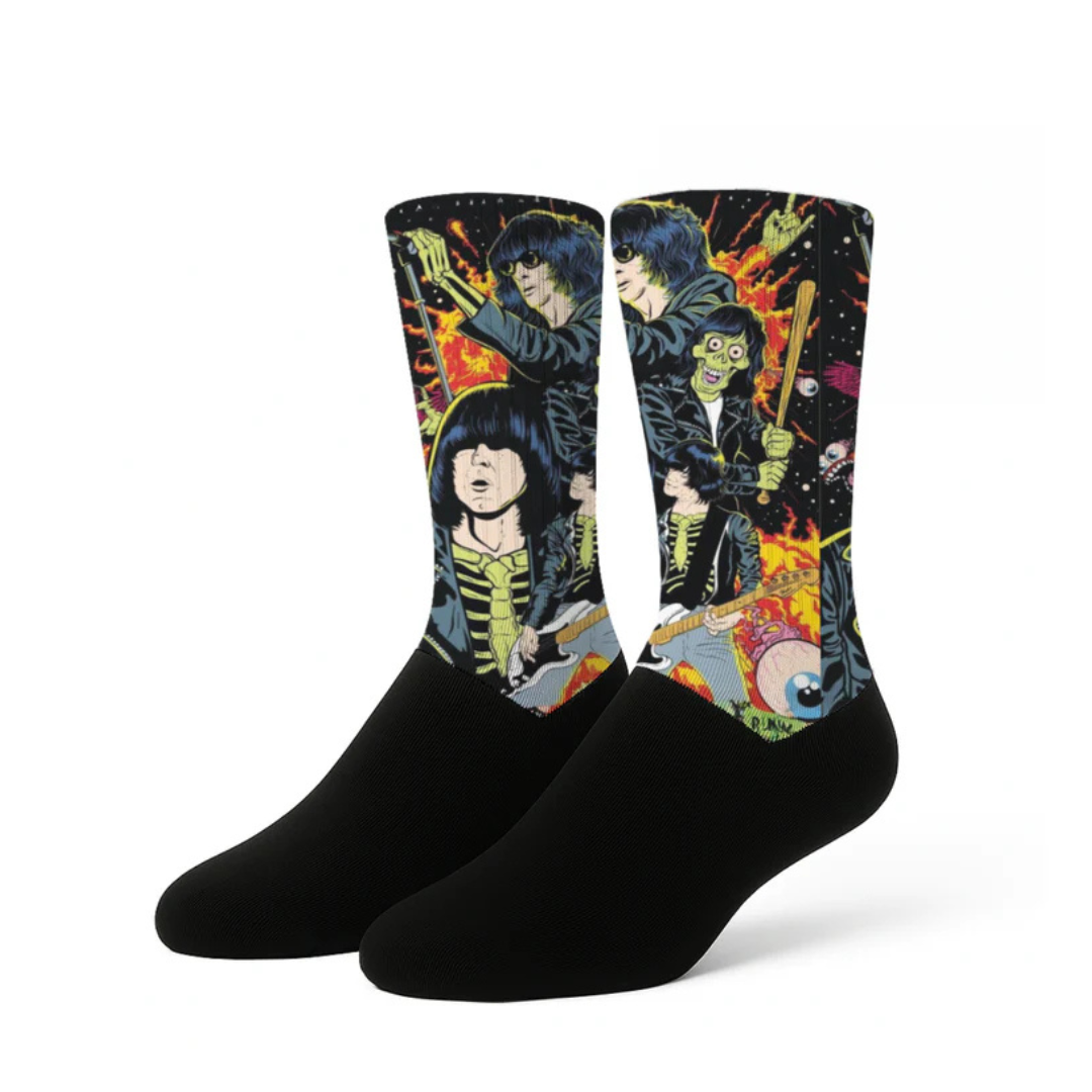 Ha llegado el calcetín perfecto para todo rockero o metalero, con una calidad y durabilidad brutal. El diseño de este calcetín esta basado en la banda Ramones con un diseño en caricatura.