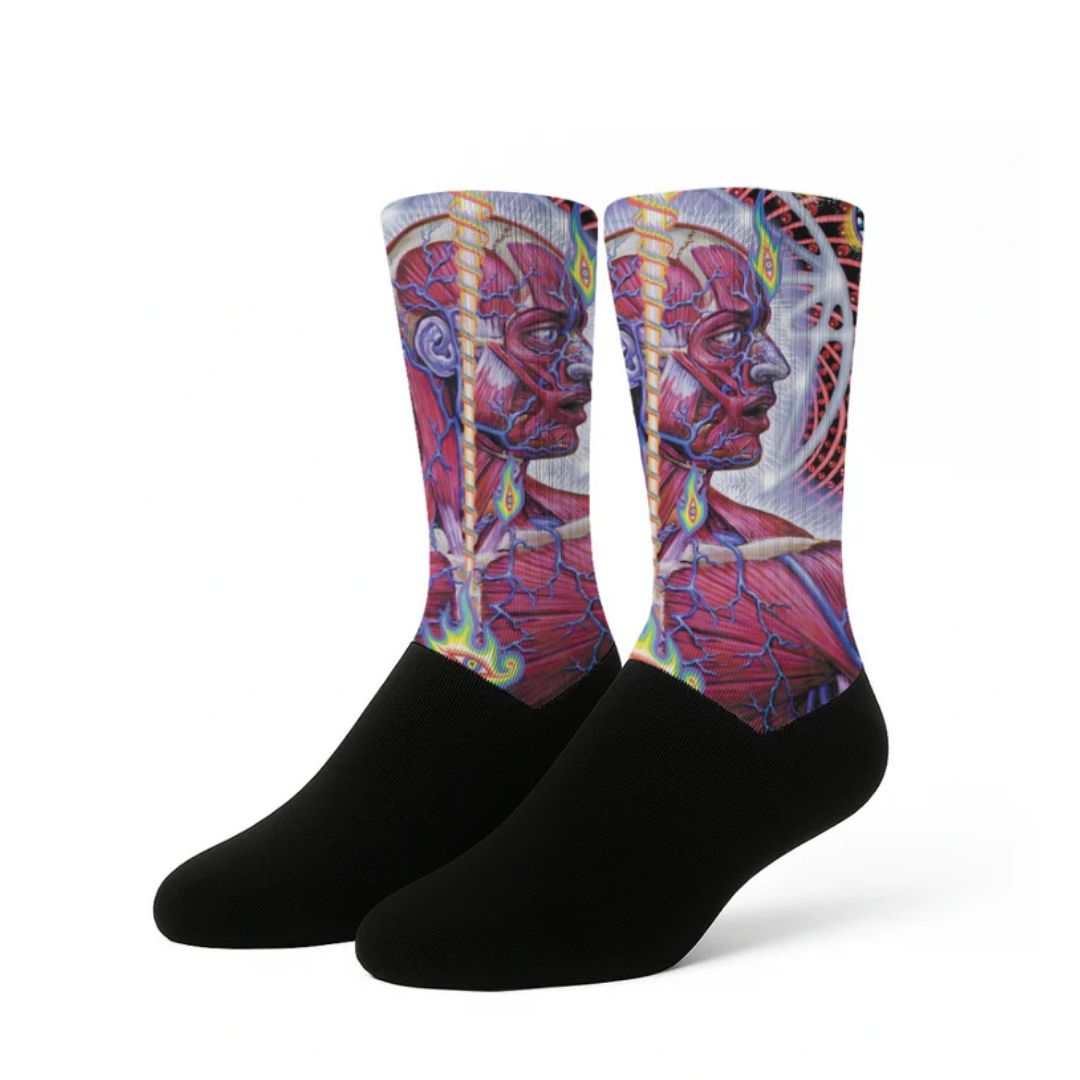 Ha llegado el calcetín perfecto para todo rockero o metalero, con una calidad y durabilidad brutal. El diseño de este calcetín esta basado en el disco Lateralus de la banda TOOL.
