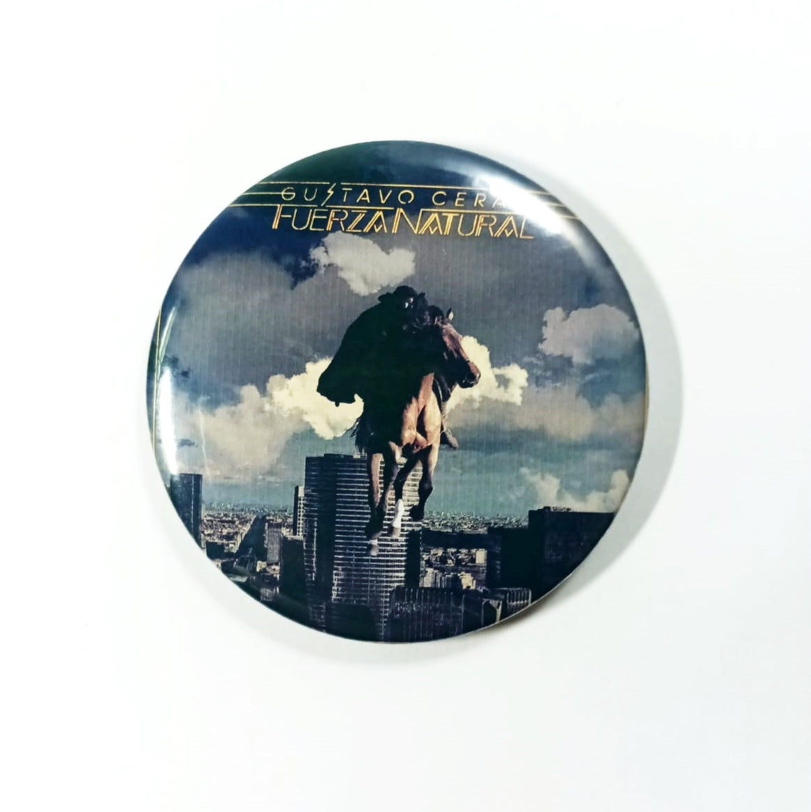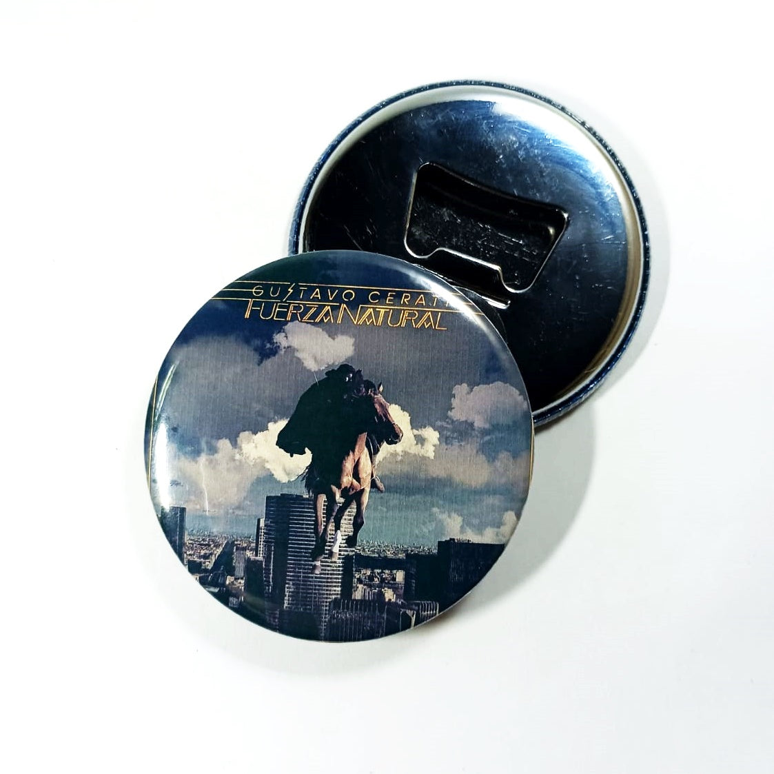 Chapa destapador con portada del disco Fuerza Natural de Gustavo Cerati.