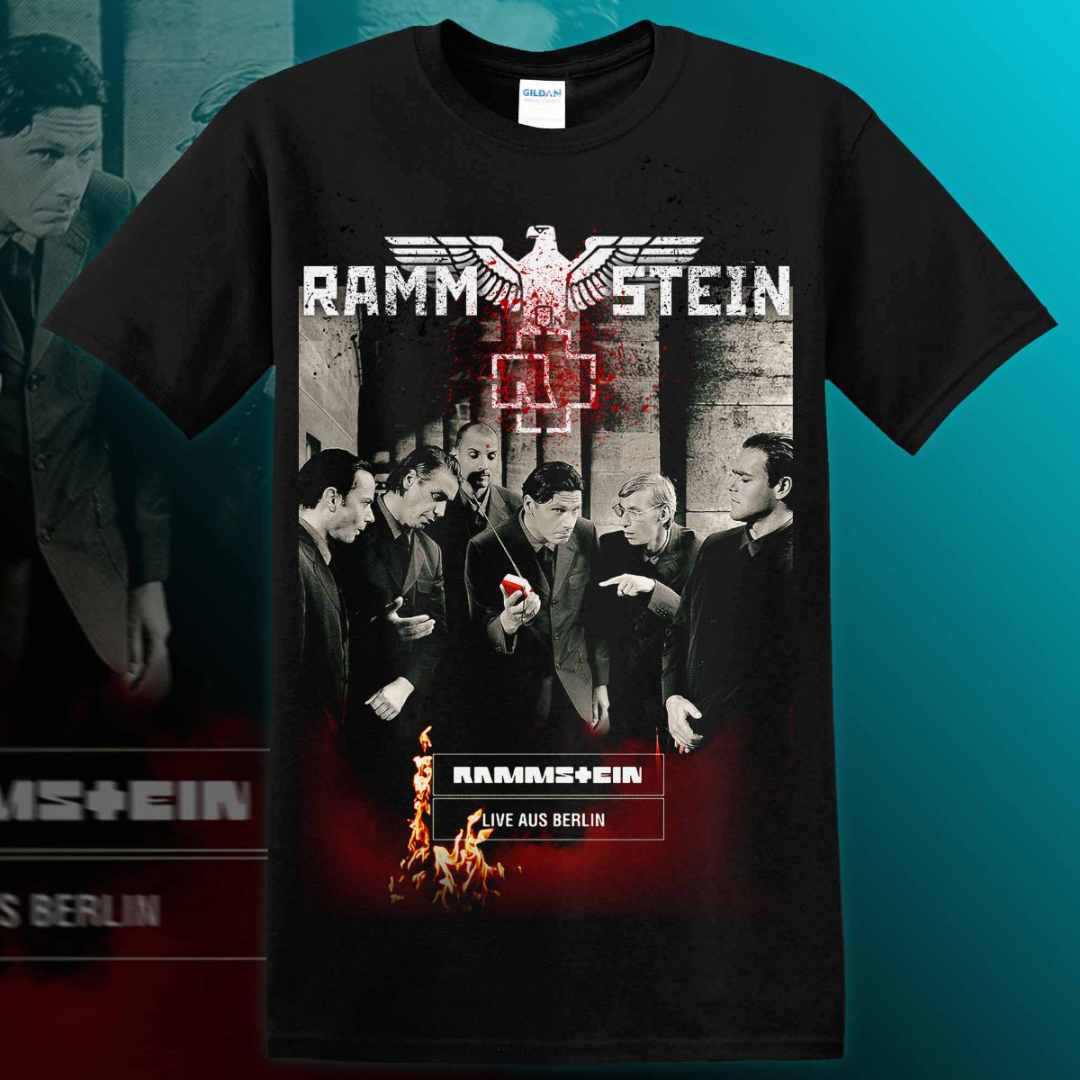 Polera de la banda RAMMSTEIN con el diseño del live aus berlin.